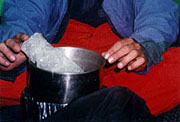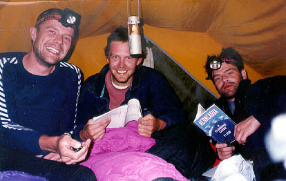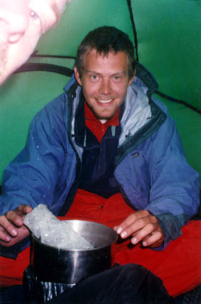 Despite the wind and cold we have a fun evening, playing charades while we melt water for the next day. The night is very windy and cold (particularly for Fred who is against the windward side of the tent!) and again we don't get much sleep.