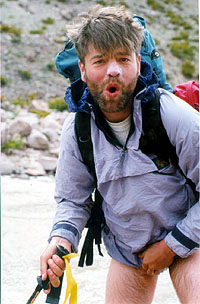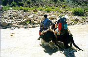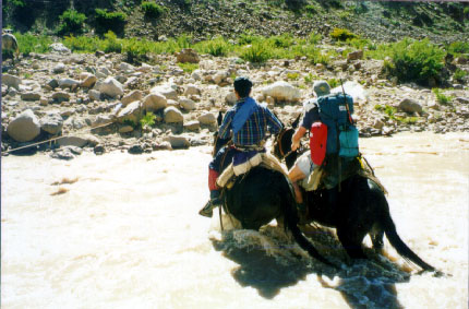 S: By the time I had forded the thigh {I had crossed in the wrong place} deep river with my rucksack, changed my blister patches, redressed and warmed up I had thought of at least 50 untimely ends for the muleteers. We met the muleteers later returning from base camp-I managed to resist plunging my ski pole into his heart, but couldn't resist telling him that we would have paid him after the second river crossing. I hope this isn't going to hamper us getting a mule back down.