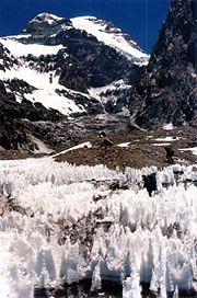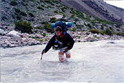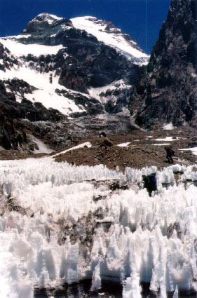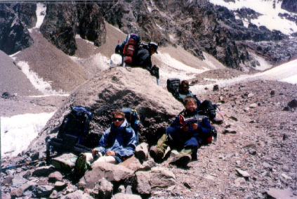 We have been wondering if other people are doing the Polish Glacier Route. Everyone in PtInca were on the Normal Route. Rudy tells us that he send off an Italian group five days ago. When asked if it was normal to climb this route at this time of year, Charlie responds "No!". This is getting us a bit worried, but also gives a great sense of adventure as we set of into the remote unknown. Reaching Las Lenas, we are happy to see a Mexican group of two heading for the glacier as well. I'm sure we'll appreciate the security more people give, when we are on the mountain.