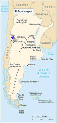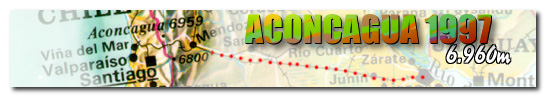 We spent a few days in Mendoza mainly regaining our weight (by eating numerous Bananasplits amongst other things) and getting used to civilization. We also had a great New Years Eve staggering back to the hotel at half past eight in the morning. We met Jim and Henry in Mendoza who gave us the news about their struggle with the mountain. They had quite an epic. The day after we left them, they attempted the Glacier as the first party that year. It was not in great condition, and they had to pitch several sections that contained sections of ice. They made good progress until somewhere below Piedra Bandera (probably around 6300m or so), when they had an unfortunate incient. Henry was leading, with Jim belaying from a wide slowledge below. Suddenly, Henry feels the rope go tight, looks down and Jim is dangling without his ice axe or head torch below. They don't quite know what happened, but Jim probably got hit by falling ice, passed out and fell off his ledge! Obviously, this forced them to retreat immidiately. Very unfortunate, because they definitely had the capacity (experience and determination) to reach the top! We also heard rumours that the Italians were the first to make the summit. After their tent ripped below camp 2, they went back to base camp, picked up their other tent and eventually made it to the top.