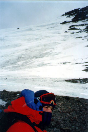 with a fatal drop over the east glacier below, should you slip, but the direct