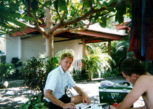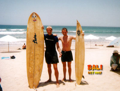 Next morning - headed out for the waves again (this was our last day on Bali unfortunately) and I started to get the hang of it. Fred already was okay at standing upright on the little board and I managed to do it a few times as well - totally cool experience. After lunch we bought a disposable camera, and went out for a photo shoot. Check out some of the photos here on the site. Our little photo session had a bit of a dramatic ending when I was trying to get Fred up real close passing me on a big wave, where instead he BANG went straight into my forehead. Luckily I didn't pass out and fortunately my dear old brother hit me with the less pointy long board and not the really sharp fun board.