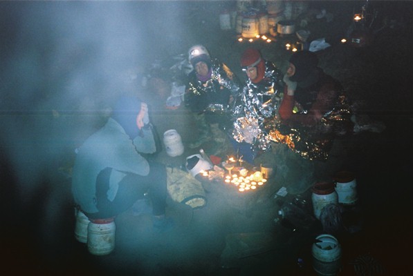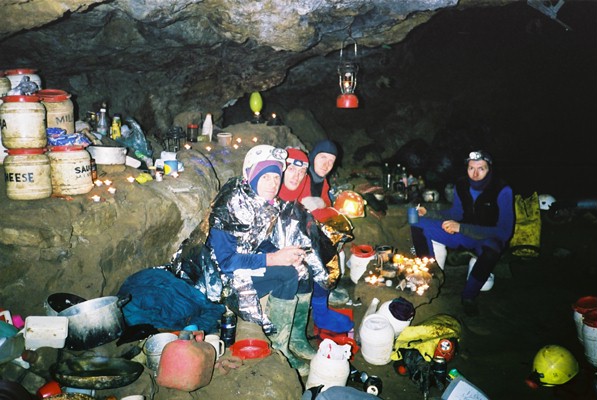 Cave camping in the Restaurant of the End of the Universe, Ogof y Daren Cilau ©2002 Martin Beale