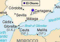 This was my first encounter with this friend of Fred's and it turned out to be a very learning experience for me (and Dave?) in ways to survive in the jungle of southern Spain. We met in Bristol where Dave was staying at Fred's place sleeping under the kitchen table. Dave was bringing all his gear to El Chorro as he was leaving England at the same time. I had brought quite a lot of stuff as well, so we where pretty packed arriving at El Chorro sunday afternoon.
