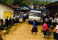 | Comidor | We head straight north on a little road. Lunch in the middle of nowhere in a comidor. A comidor is just a normal house where people can come to eat in their kitchen and pay a little for whatever is brewing that day. No choice of meal as in a restaurant, no signs to show that there is a business going but we find it by asking someone where we can get a meal. This is Mathias' first meal in Central america, and very much out in the middle of nowhere. Very bad roads, very slow, turned out to be not the optimal road in that direction. Teachers partying in Salama. Great little hotel with courtyard. Playing tunes on guitar and flute, and it gets a lot of interest to say the least. |