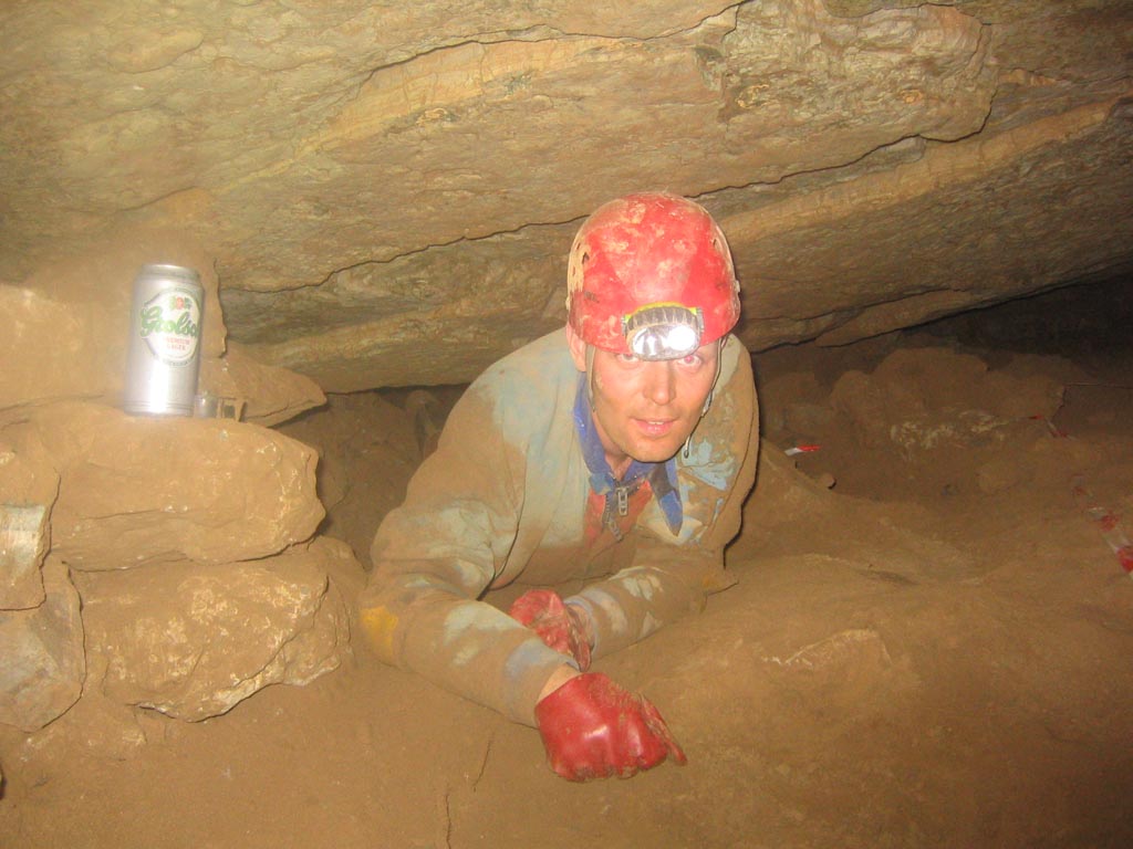Time was flying in there, but as Mark was filling his sixth tray, it was decided that we had to start making a move outwards. It was with some reluctance that we then retreated from the digface to the beach. Our tired bodies were refreshed with eponymous Grolsch: within 10 minutes, I was raring to go again. I went back for one last look at the digface (that I hadn't seen since I was digging 4.5 hours ago). I was really surprised and heartened to see the progress that the team had made. They must have got about 2.5 royston's (5m?) further than I had, the dug out area was nice and large and there was a really beckoning view ahead. I was surprised to see that the passage went down quite a bit before levelling off (the digface is now in a horizontal, or possibly rising, passage).