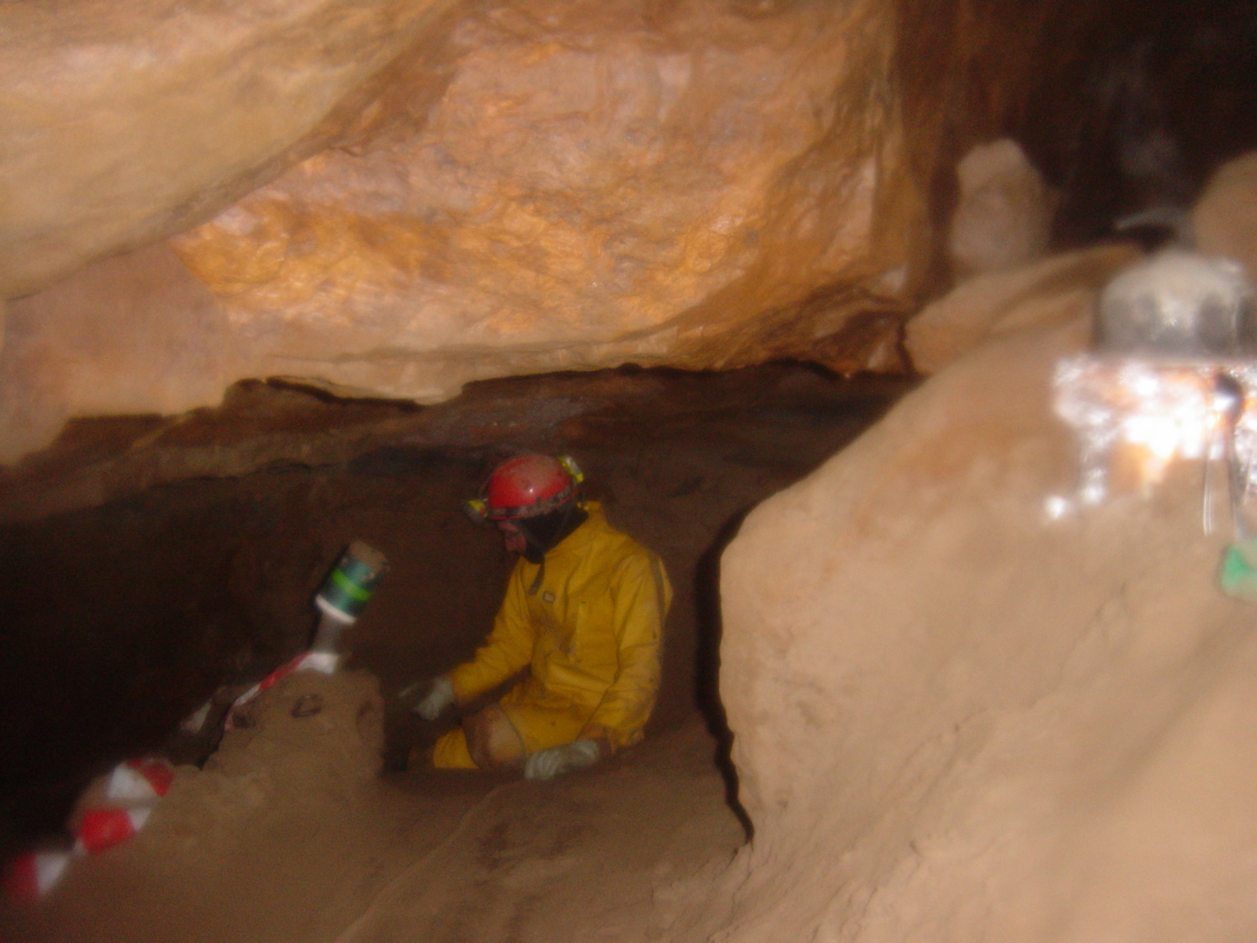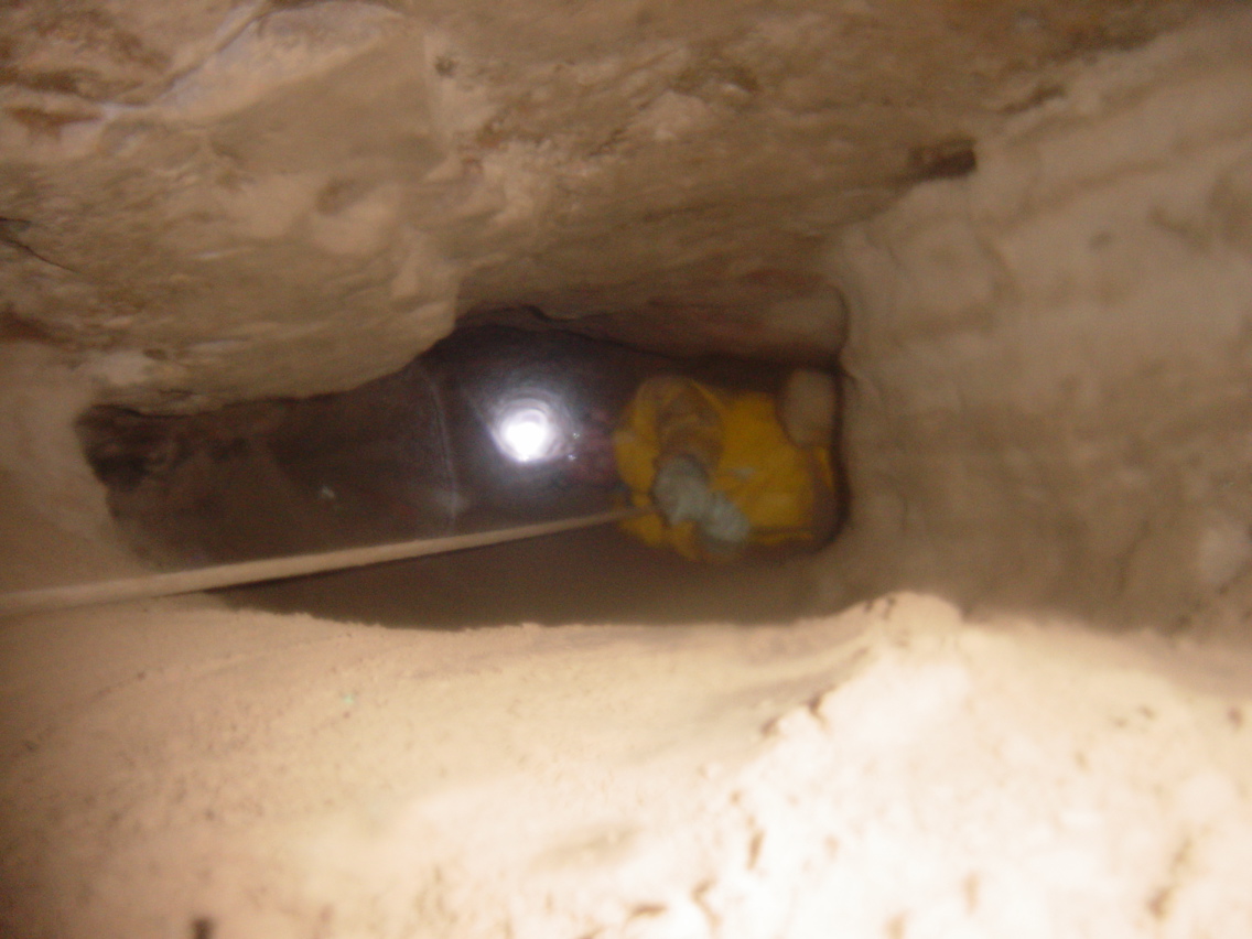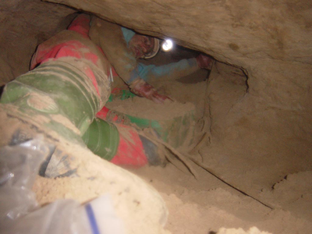 Now that the dig was a pure uphill sand dig, the spoil came out thick and fast. I left the digface after a glorious metre of progress and when I came to inspect it again just two hours later, the dig had advanced by 3m or more. the amount of progress we were making was epic. The only problem we had was that this was a pure sand dig and there was no air space. Still, the wafting seemed to do the trick.