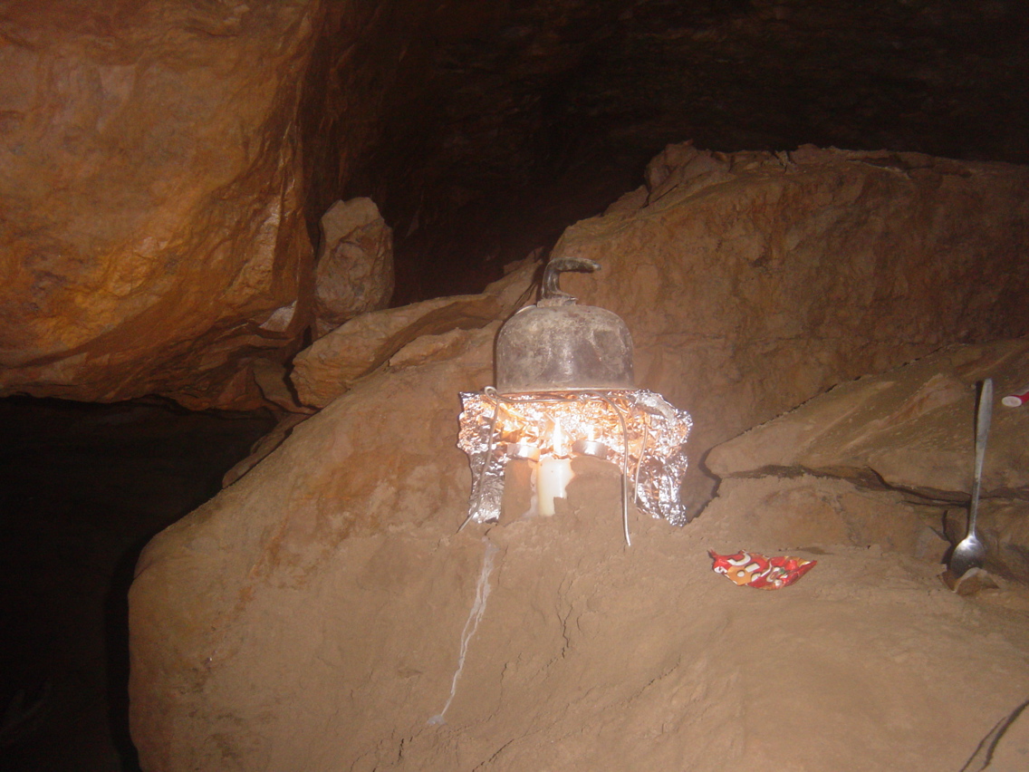Gonzo was the first one ready to set off and he went off alone to prepare the dig area. I followed and met him in the Oregano Trail 45 minutes later. Gonzo had prepared the cooker and had the tea on the go when I arrived. The place looked beautiful: candles flickered to warm the kettle and to provide light, surreal plops were heard as water dripped from the roof into the amazing drip holes in the Oregano Trail. The tension was palpable as we waited for the rest of the Rock Steady Crew.