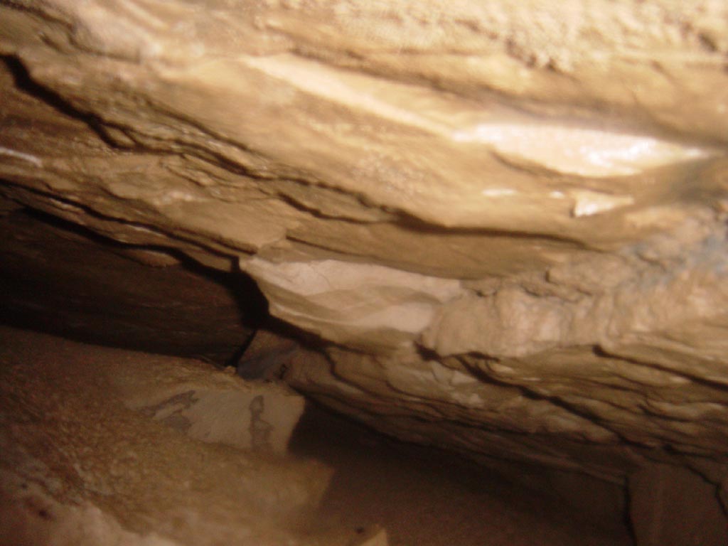 Towards the end of the day, Henry seemed to be pretty well stopped at the digface by some large boulder. When I followed him to the face, I found a huge slab of rock with a crowbar sticking horizontally out of it. This required a lot of patience and yoor to liberate. After an epic battle, I finally succeeded by totally clearing the top of the slab of spoil, crowbarring for Britain and heaving on the slab. When it finally worked free, it was a great feeling. I got a sling around it as soon as possible and handed responsibility over to the draggers. This slab was so large that it had to be hammered down to size to get it out of the passage. Once this slab had been removed, the dig became the perfect uphill sand dig. The sand was totally beautiful: thin layers of multicoloured sand with the odd band of clay here and there. Sweeping the small crowbar across the digface would cause the sand to collapse down in front of you - totally ready to be loaded into the kibble tray when it appeared.