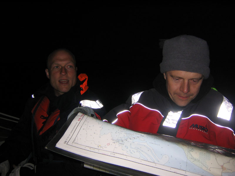Snekkeløbet (reef of Zealand): It’s pitch black. Fred and Anton wake the others at this first calling point. We’ve done well and have gained a couple of miles on the visible competitors. Mathias checks the official website for a result and realizes we’re 9th. As we watch in amazement Nokia, a gigantic trimaran starting 7 hours after us, silently races by in the dark.