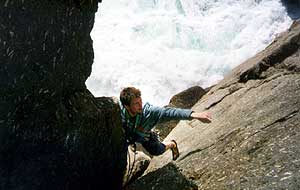 Mathias above the frothing sea in Cornwall, UK.
